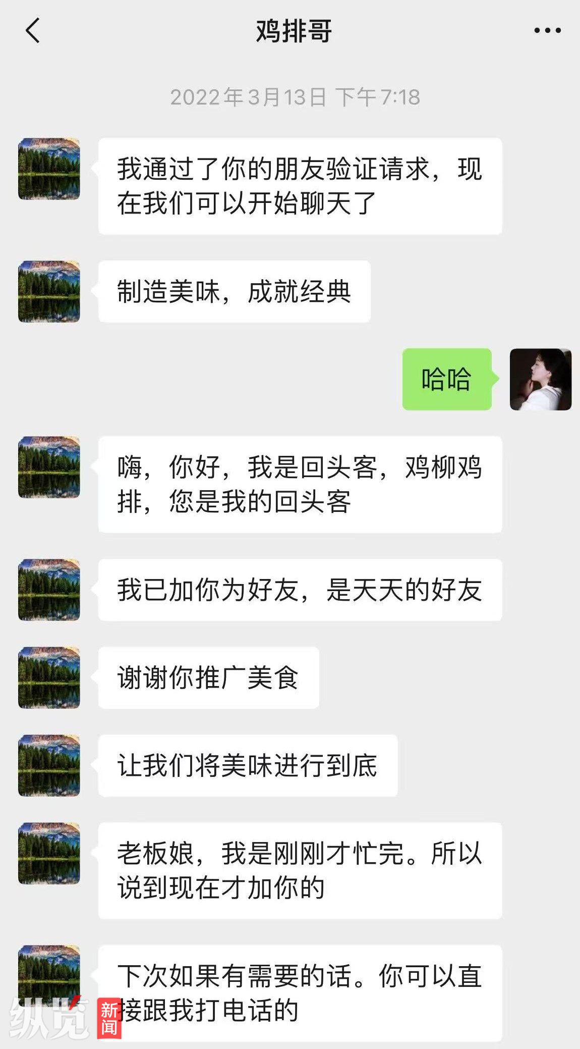 购买了几次鸡排之后,付女士添加了“鸡排哥”的微信。“制造美味,成就经典”“我已加你为好友,我们是天天的好友”“让我们将美食进行到底”等充满阳光、幽默的语言频频出现在付女士和“鸡排哥”日常交流中,让她感觉“聊天也是一种享受”。付女士回忆,“鸡排哥”也不是天天快乐,偶尔也有烦恼,“去年我听他讲他们的房子还是租的,但他依然这么乐观,有活力,很积极,真是很感染人。”