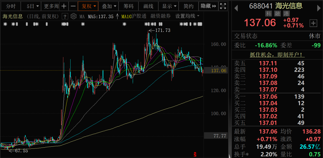 根据公告,海光信息拟以0.5525:1的换股比例吸收合并中科曙光,并向特定投资者发行股份募集配套资金,海光信息为吸收合并方,中科曙光为被吸收合并方。本次换股吸收合并完成后,中科曙光将终止上市,海光信息将承继及承接中科曙光的全部资产、负债、业务、人员、合同及其他一切权利与义务。